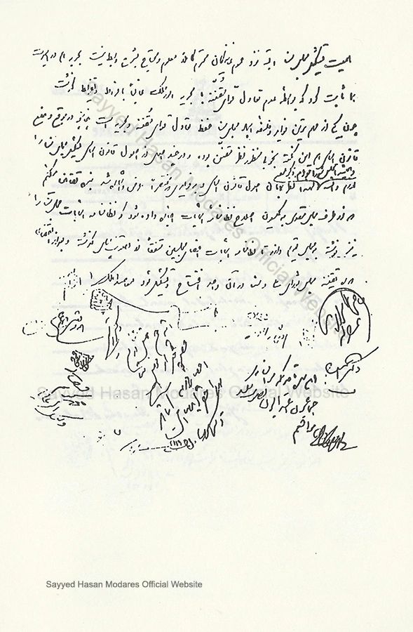 Modares was not only an informed, patriot, honest, and devoted politician but also a liberal and an elevated person. It is hoped that Sayyed Hasan Modares, a key figure of the Iranian political history, be recognized in a manner that he deserves.